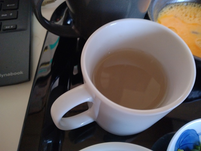 今日の昼はカップのフォーと鶏のから揚げとゆで卵である。