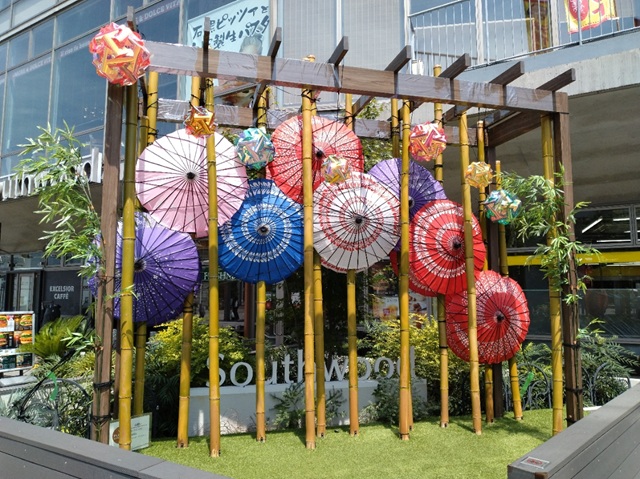 整形外科を出て駅前の広場に行くと、多分6月の梅雨の季節だからだと思われるが、傘のディスプレイがしてあった。