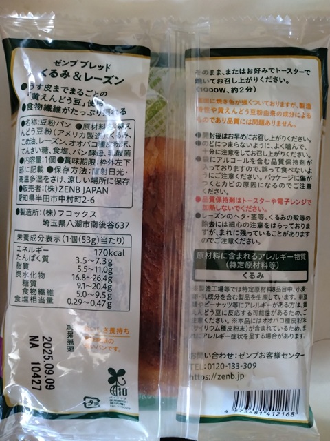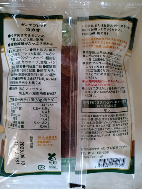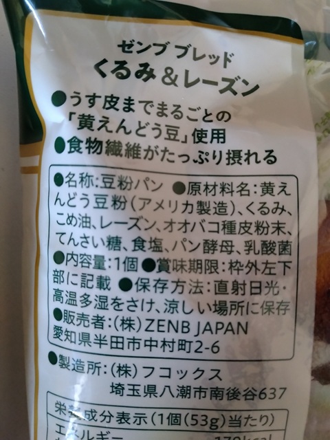 駅前のセブンイレブンで買ったZENBUの豆粉パンは2種類しか売っていなかったのだが、その2種類とも食べてみることにした。