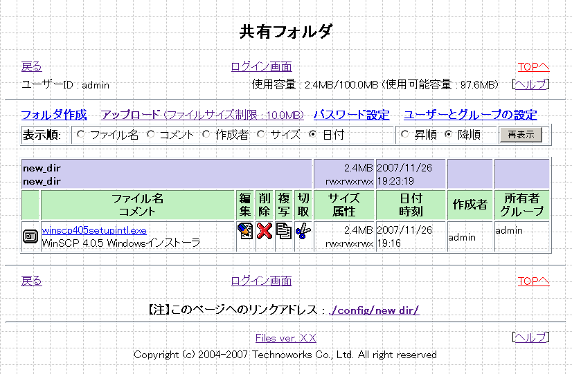 Files Ver.2.3(WEBファイル共有PHPスクリプト)