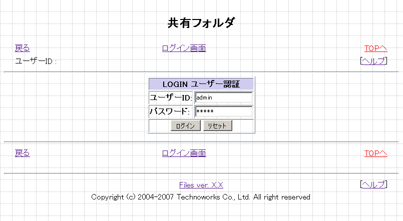 ログインすると、共有フォルダの先頭フォルダのファイル一覧が表示されます。