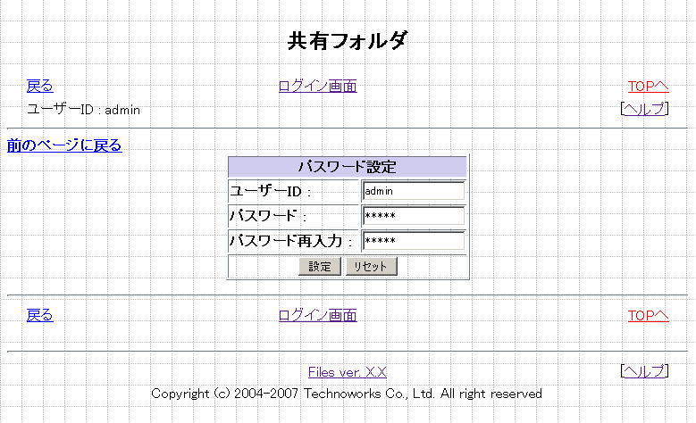 ファイル一覧上部の「パスワード設定」を選択すると、下図のパスワード設定画面が開きます。