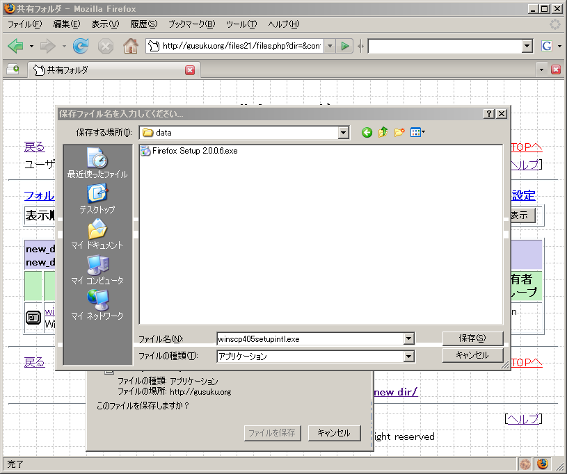 選択するとファイル保存のダイアログが表示されるので、適当な名前を付けて保存します。
