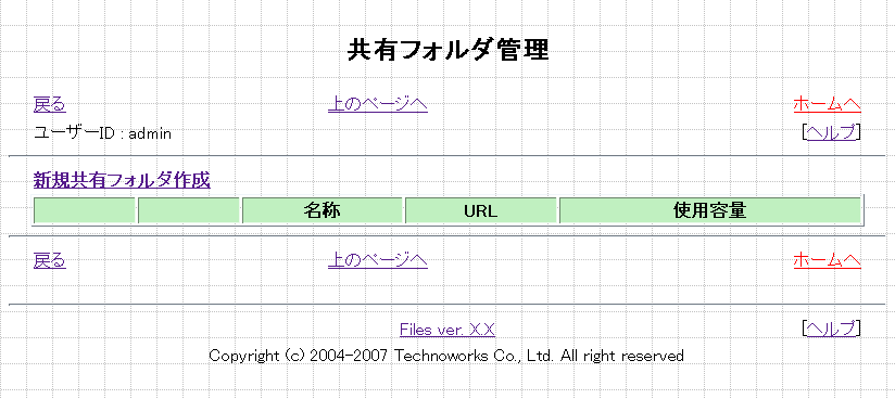 作成済みの共有フォルダの一覧を表示します。(下図)