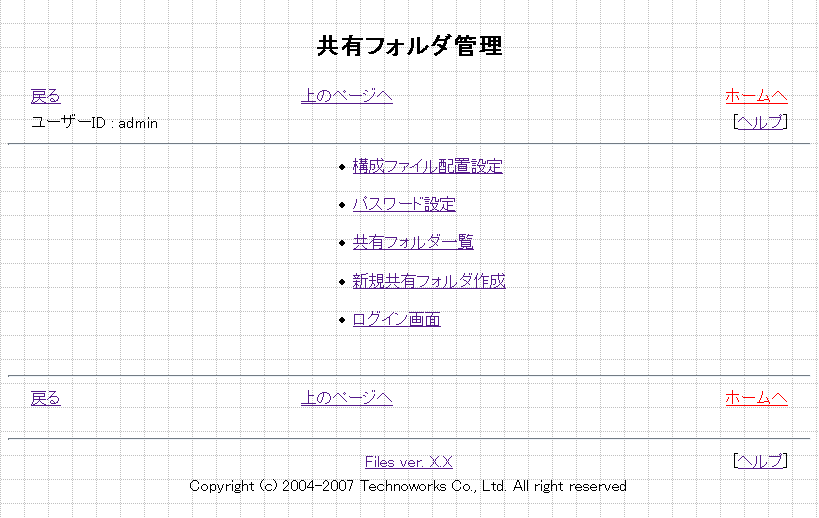 デフォルトでは、http://www.example.com/files21/config/share_folder/index.php のように、当スクリプトのフォルダの下の設定ファイル用フォルダの下に入り口のページが作成されることになります。